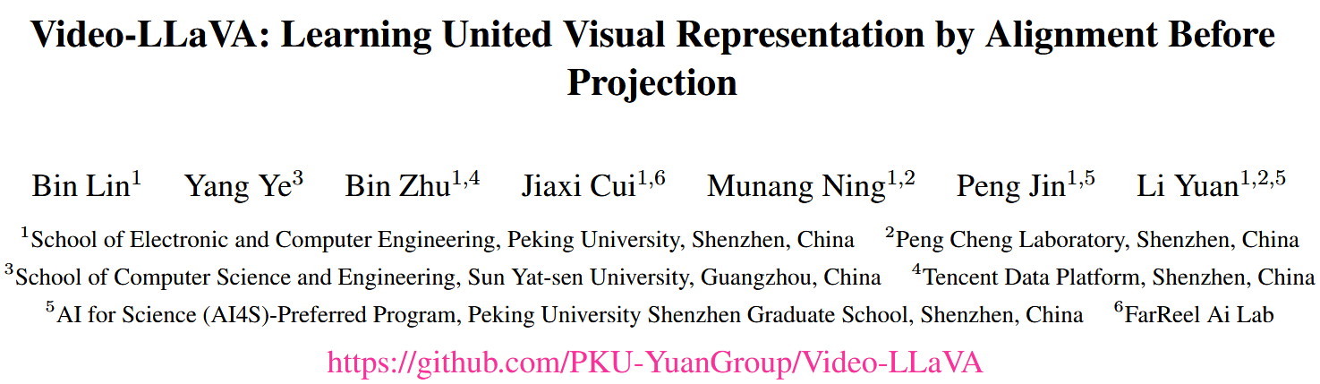 标题: Video-LLaVA: Learning United Visual Representation by Alignment Before Projection