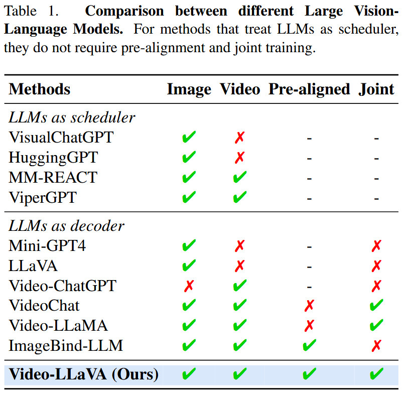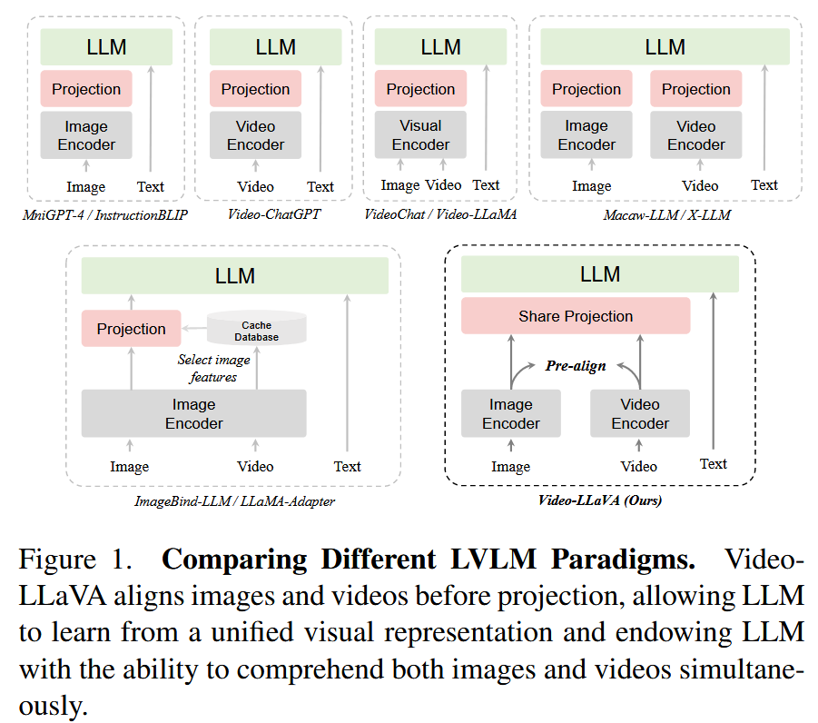 - 我们引入了Video-LLaVA,一个强大的LVLM基线。在训练过程中,Video-LLaVA将视觉信号绑定到语言特征空间,统一视觉表示,并提出在投影前进行对齐的解决方案。我们使LLM能够同时在对图像和视频上执行视觉推理能力。